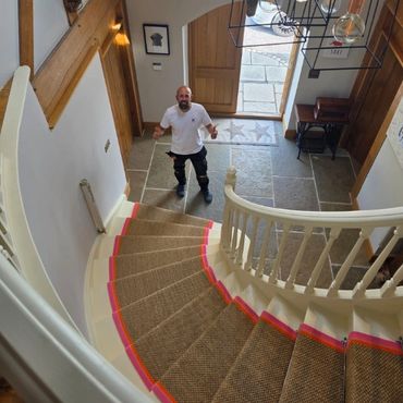 Handmade stair runners in wool, sisal, and a wide range of materials ,measured, made, and fitted to your exact staircase. Whether it's a simple straight flight or a complex Victorian staircase, Carl has been fitting stair runners across Staffordshire for over 25 years.